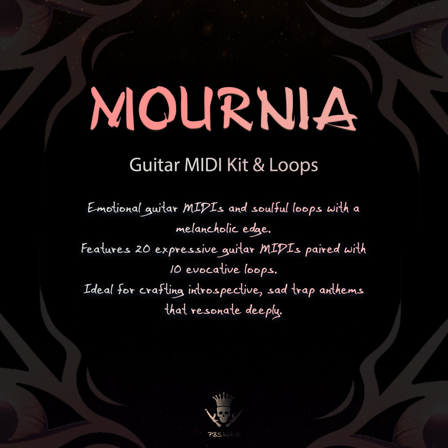 Mournia delivers 20 emotional guitar MIDI files and 10 expressive loops, perfect for sad trap, lo-fi, or melodic rap. With a raw and human feel, this kit helps you build introspective melodies that speak with soul and simplicity.