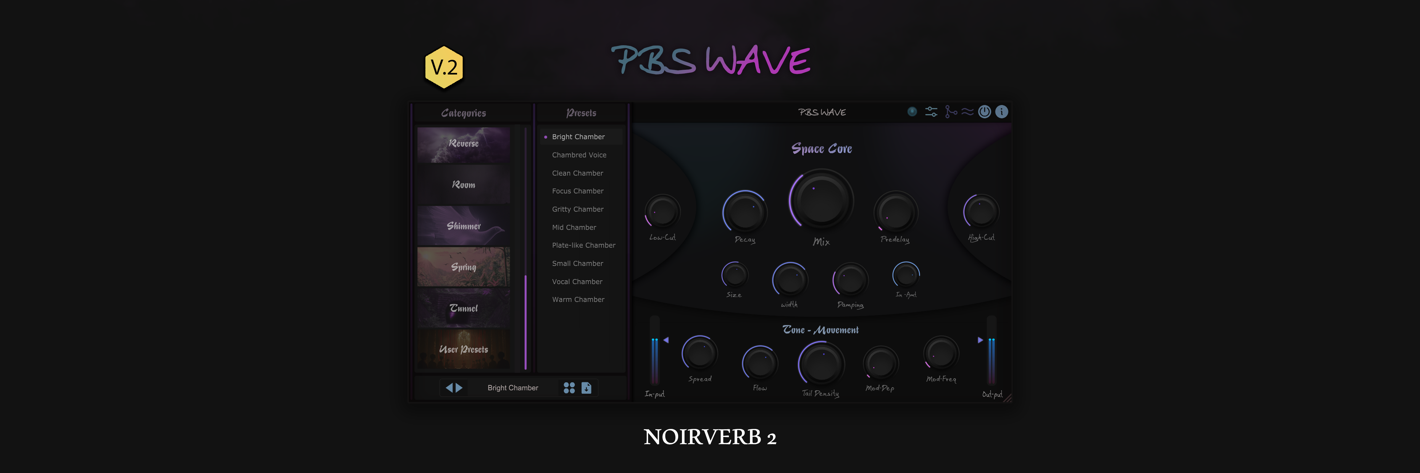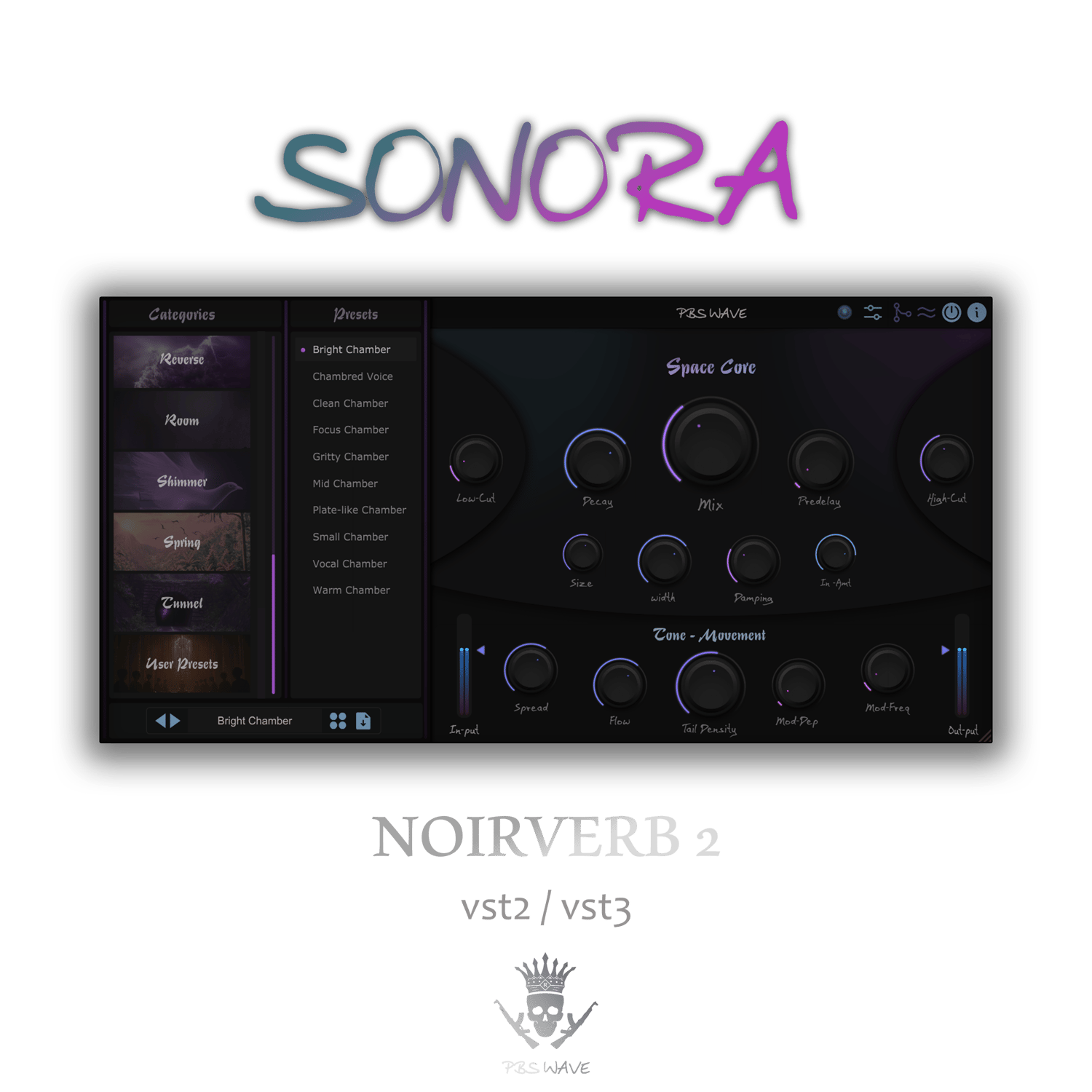 SONORA NoirVerb 2 is a reverb plugin designed to add deep emotion and cinematic space to your sound. Whether you're building ambient textures or enhancing melodic details, NoirVerb 2 gives you full control with a clean interface, 14 reverb types, and over 100 carefully designed presets. It also includes built-in compression, saturation, and creative tools to shape your reverb exactly the way you want.