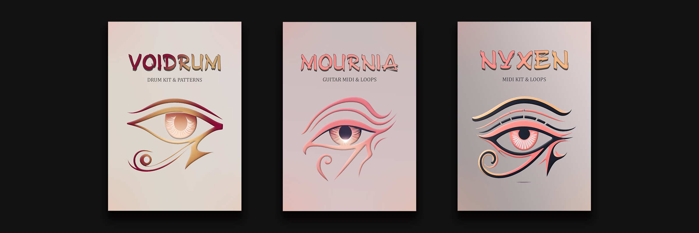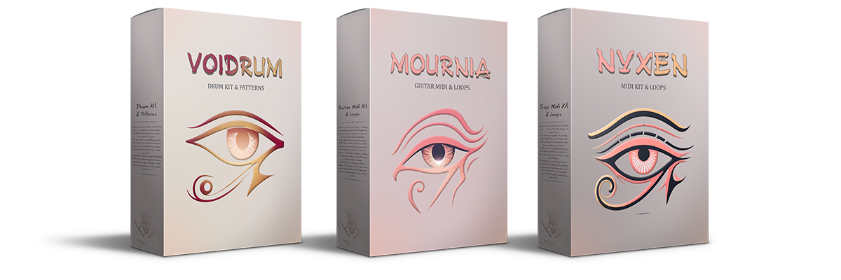 Trinity is a dark trap bundle with over 300 files, including trap MIDI melodies with loops, guitar MIDIs with emotional loops, a full drum kit (snares, kicks, hats, 808s, vox, etc.), plus matching MIDI drum patterns and drum loops for every groove.